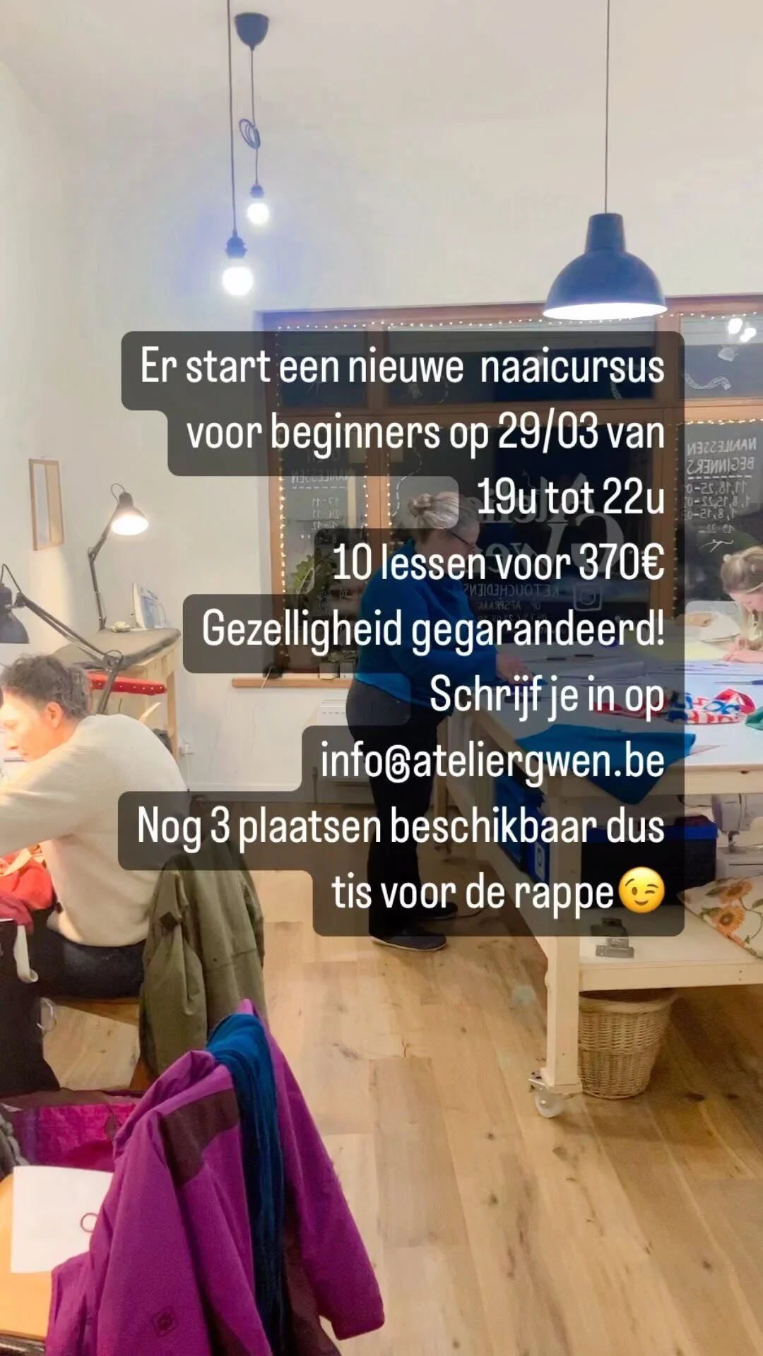Na deze reeks kan je inschrijven voor de open naailessen om te werken aan je zelf gekozen werkstukken -